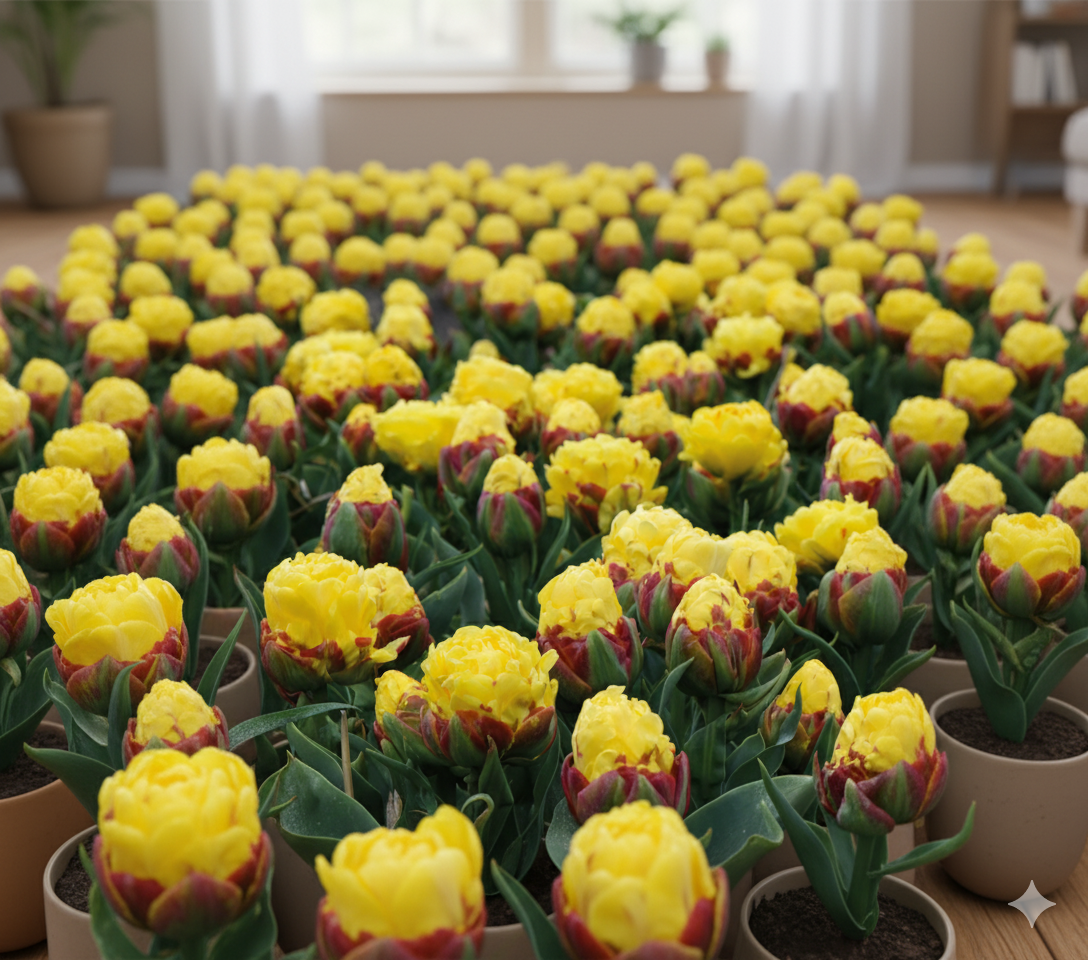 Для успішного вирощування тюльпанів «Ice Cream» у кімнатних умовах оберіть світле місце з м’яким, розсіяним освітленням.